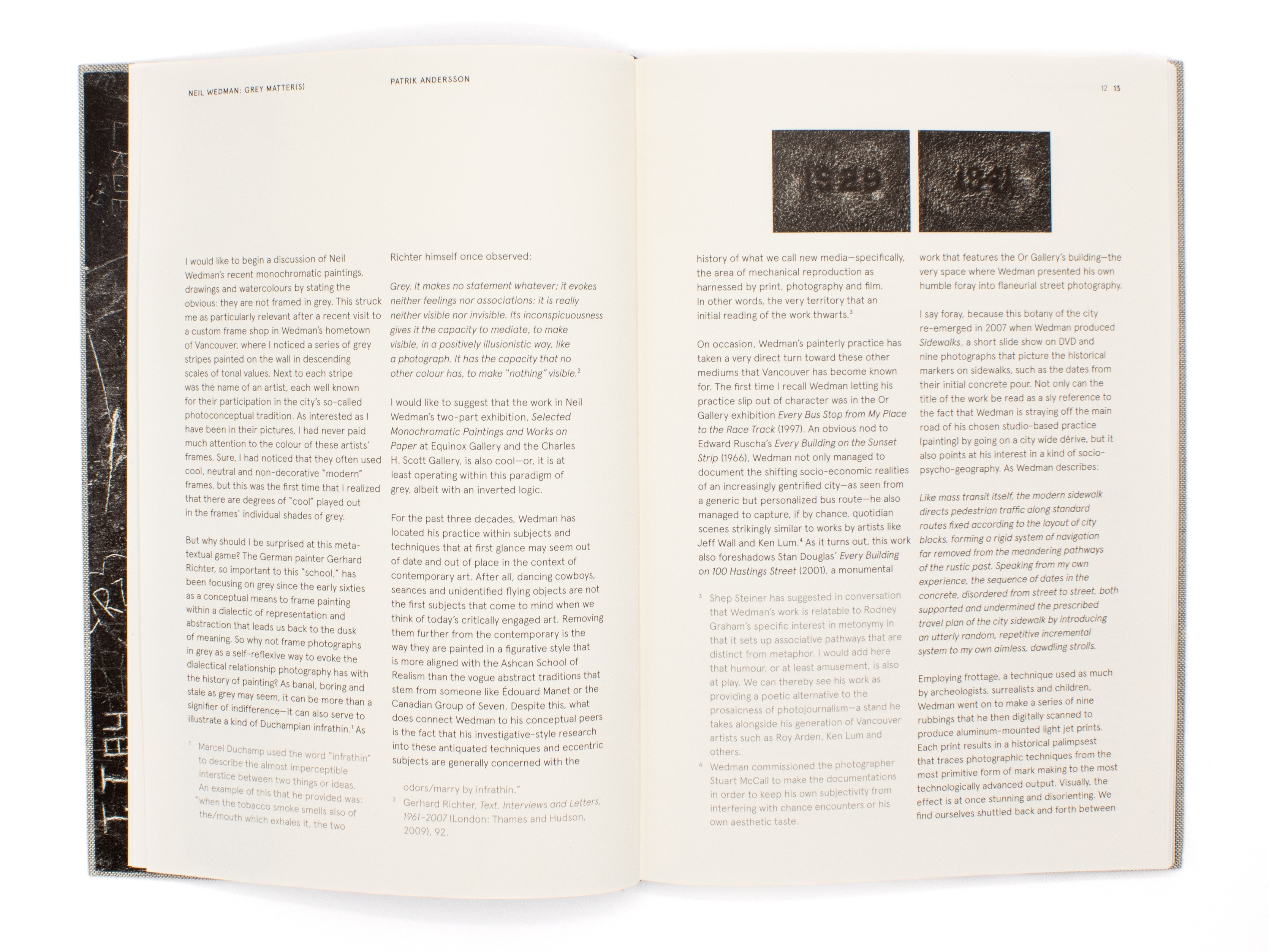 A new monograph on the works of Vancouver artist Neil Wedman featuring texts by Patrik Andersson, Brady Cranfield and Kate Noble.